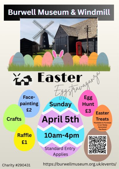 Easter Family Fun at Burwell Museum & Windmill. Sunday 5th April 2026, 10am – 4pm (last admission 3pm)